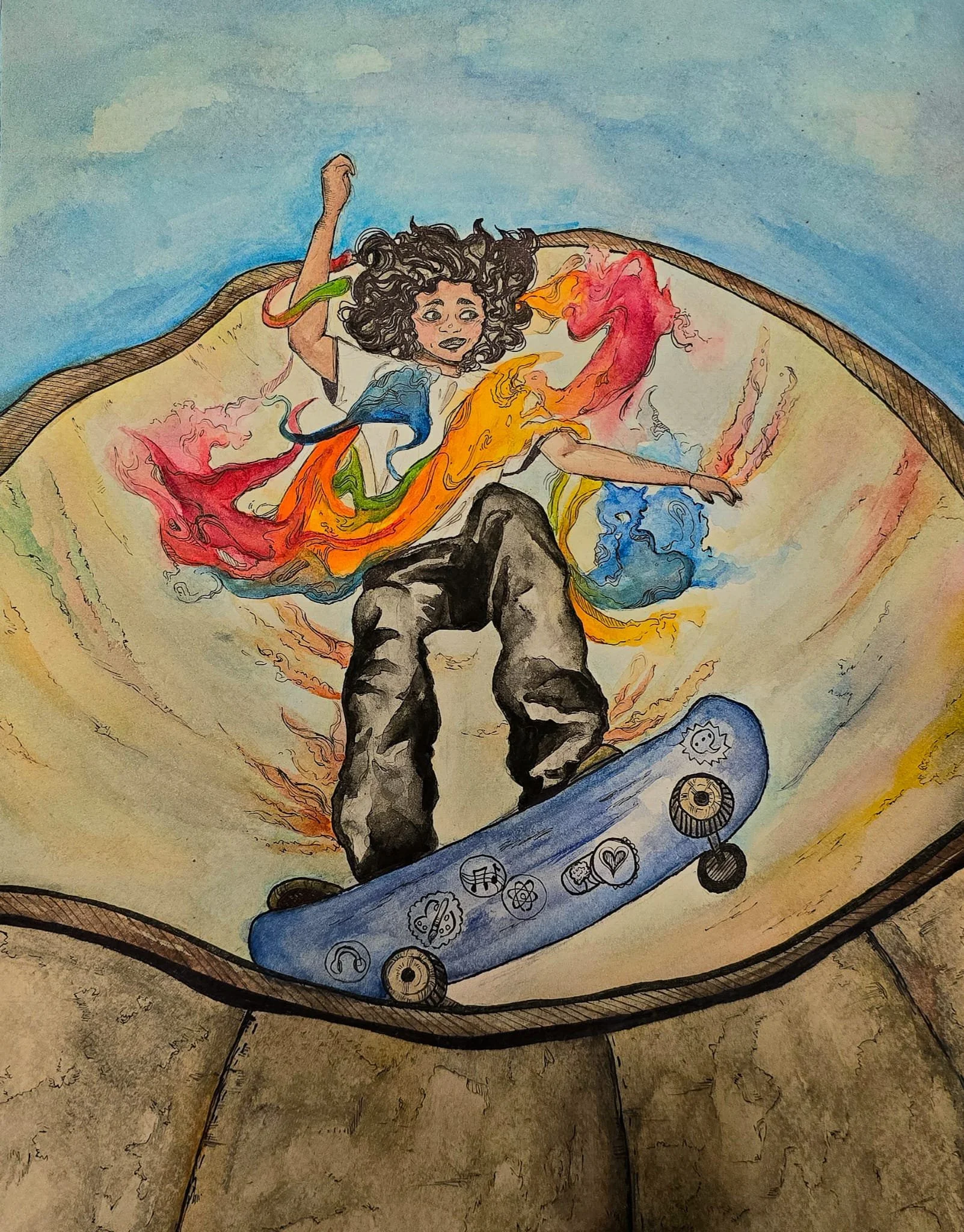 My favorite mediums include watercolor and pen, as the fluidity of the paint and concreteness of the pens create a beautiful balance to behold.